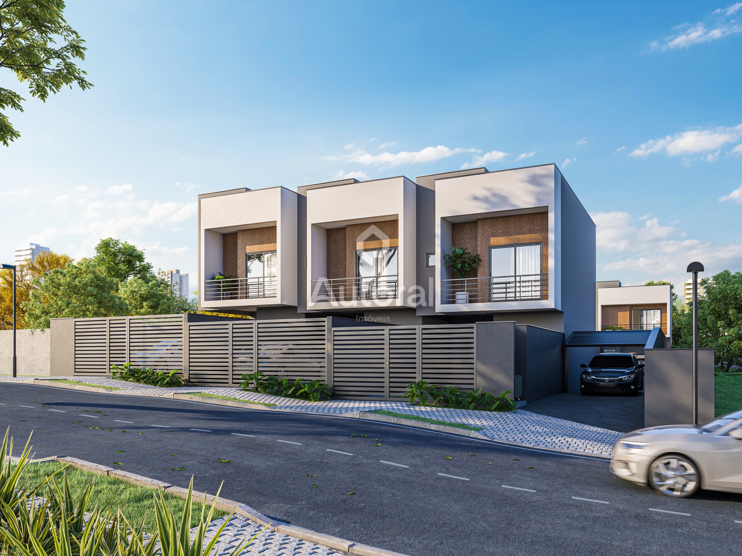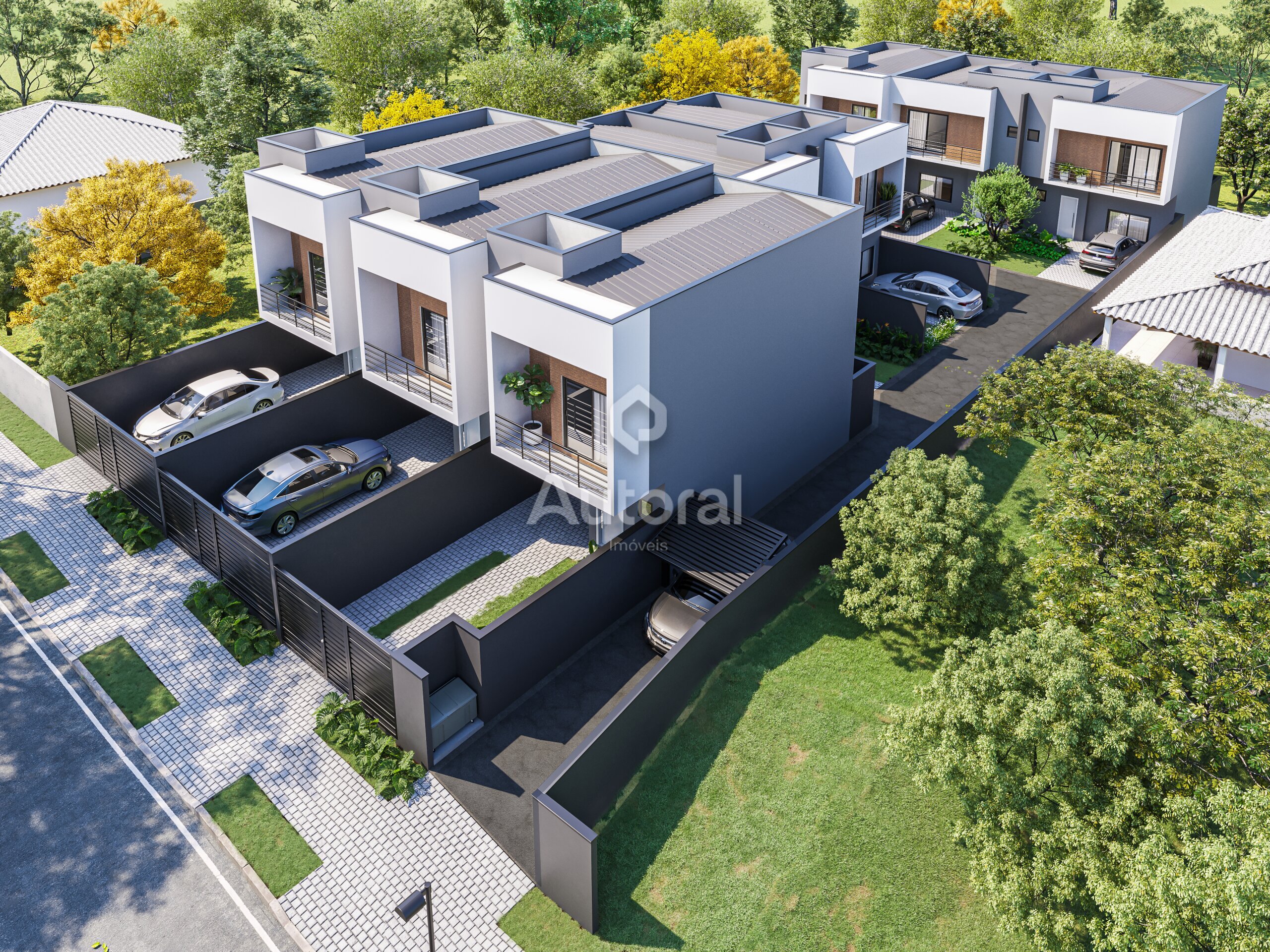 O Residencial Ferrara conta com 8 sobrados em condomínio, 3 com entrada independente para a rua e 5 internos
